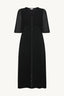 An elegant midi dress made from 100% viscose with a soft viscose lining for added comfort. Designed in a regular fit, it features a flattering V-neckline, button-through front, and short semi-sheer sleeves that add a feminine touch. The smooth drape and timeless silhouette make it a versatile piece suitable for both everyday wear and special occasions.